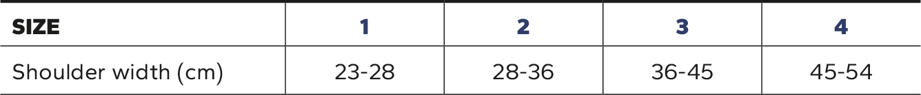• Acromioclavicular strap with dorsal self-gripping connections, secure fastening