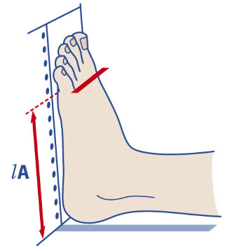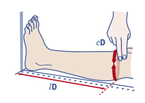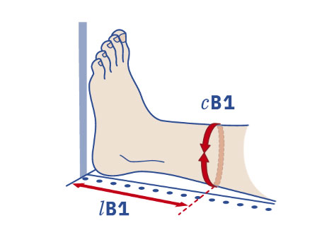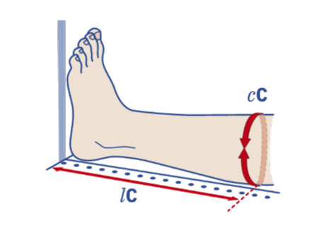 Individuare sulla cute i punti da misurare, segnarli sul lato esterno della gamba per facilitare la misurazione delle lunghezze. Per individuare le lunghezze far aderire il metro all’arto. Si consiglia di rilevare prima tutte le lunghezze, a seguire rilevare le circonferenze. Il piede deve essere mantenuto inclinato a 90° per tutte le misurazioni.