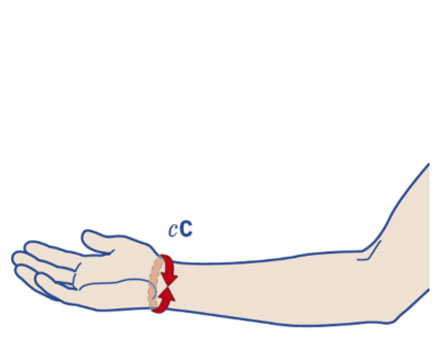 Paziente seduto con dorso avambraccio su piano rigido (mano verso l’alto).