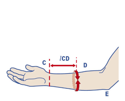 CD: rilevare dal punto C al punto D (a metà tra il punto C e il punto E), con metro a contatto con l'arto.