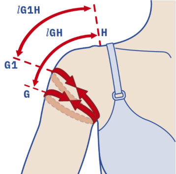 CF: rilevare dal punto C al punto F (a metà tra il punto E e il punto G) con metro a contatto con l'arto.