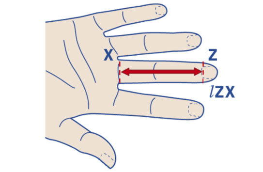 Rilevare circonferenza punto Z e circonferenza punto X per ogni dito.
